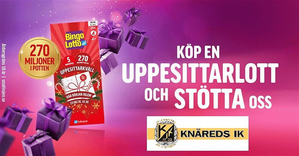 Saknar Du Bingolott till Jul och nyår? Knäreds IK har lotter kvar. Ta kontakt med Håkan Haby (Ungdomsansvarig) 076-133 26 96, Gittan Svensson 070-54 34 961